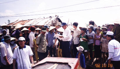 Lũ Lụt Miền Tây - 19.10.2002 -Thành viên hai nhóm chuẩn bị trao quà cho bà con nghèo tại xã An Bình B - huyện Hồng Ngự |