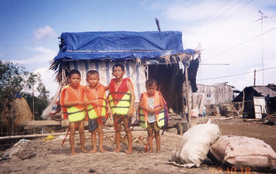 Lũ Lụt Miền Tây - 19.10.2002 -áo phao trở thành chiếc áo hộ thân của các em vùng lũ lụt miền Tây sau khi cuộc "thử nghiệm" |