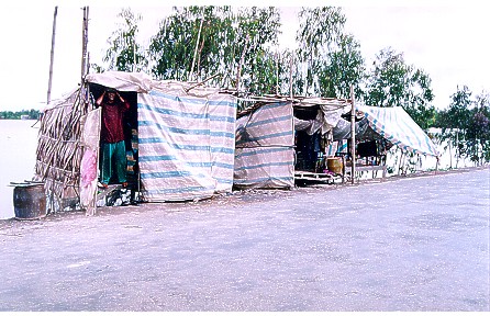 Hình ghi nhận trên đường về Sàigòn...dựng "nhà" tạm bợ sát đường lộ để chạy lũ...Nhưng chúng tôi không còn khả năng vật chất để dừng xe lại nữa....